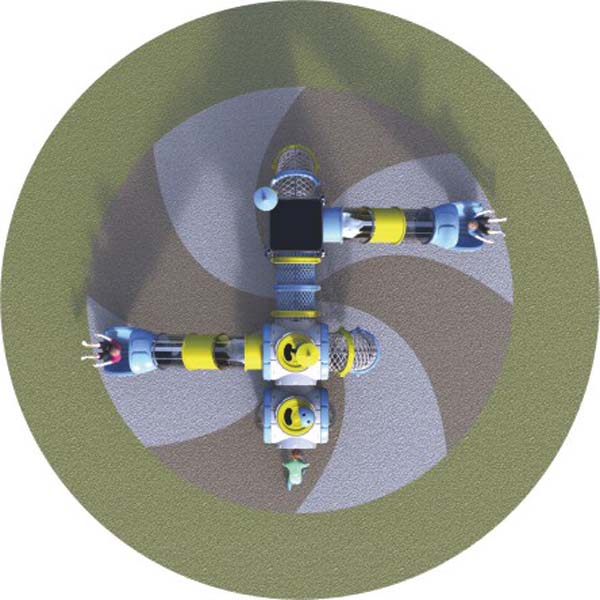 鐵件:采用?60mm、?48mm、?38mm、?3mm、?28mm,壁厚為2.0mm鍍鋅管,焊接采用氬弧焊及CO2氣體保護焊,整體加工成型后經專業(yè)技術人員進行拋砂處理,表面再噴涂中國立邦戶外環(huán)保聚酯珠光粉末,高溫固化,表面光滑,抗紫外光能力強,色彩鮮艷,不易脫落,耐腐蝕;噴涂設備采用靜電粉末噴涂裝置,粉末回收采用小旋風和進口濾心,高效率,無污染。 網桶外鐵架為直徑48MM鋅鋼管,管壁厚度0.2CM,內部圓形弧度架為3MM鋅鋼管鋅鋼管,管壁厚度,0.2CM,網繩均采用14mm進口航海船用纜繩.優(yōu)質鋼管,二氧碳氣保護焊接,精細加工。表面采用拋丸除銹、靜電吹塑工藝。